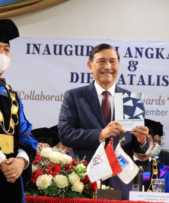 Luhut Binsar Pandjaitan Meresmikan Hasil Penelitian Bersama Poltek SSN dengan IT Del: “Tinjauan Strategis Keamanan Siber Indonesia Menuju Era 5G”.