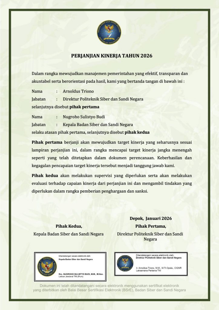 Perjanjian Kinerja Politeknik Siber dan Sandi Negara